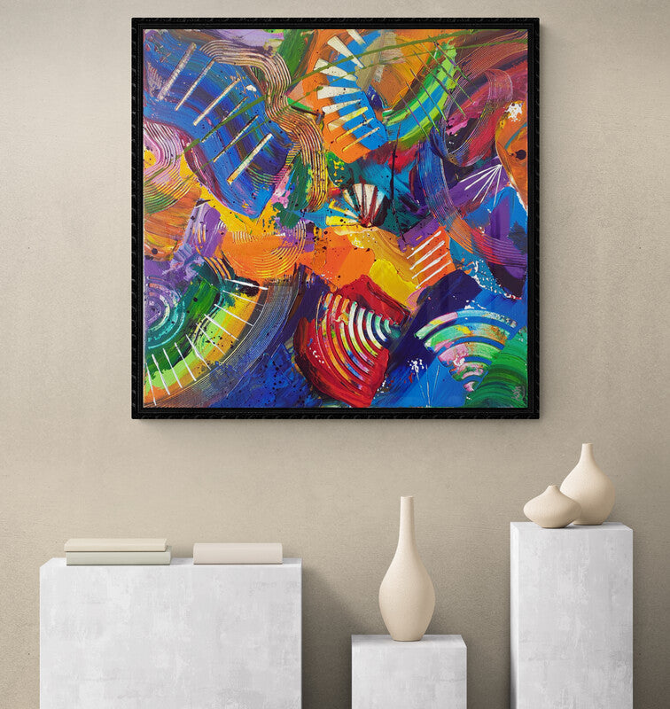 Candy 20x20 inch wrapped canvas created with find acrylic paint and have a natural finish. This piece is signed, numbered and comes with certificate of authentication. This "Wall Candy is ready to hang and ships for Free. Contemporary art infused with vibrant hues to create an eye-catching statement piece. Each work of art is carefully crafted to last, with a signature, number, and certificate of authentication, plus free shipping for the ultimate convenience.