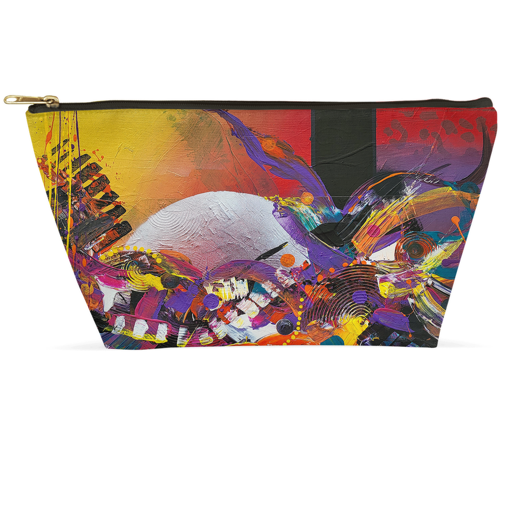 These durable 100% polyester poplin fabric bags feature a gold zipper. Made in USA. Care instructions: Machine washed on cold, no bleach. Tumble dry on low. Do not iron or dry clean.