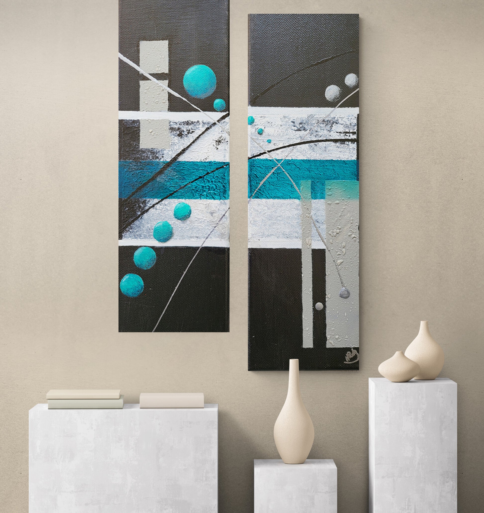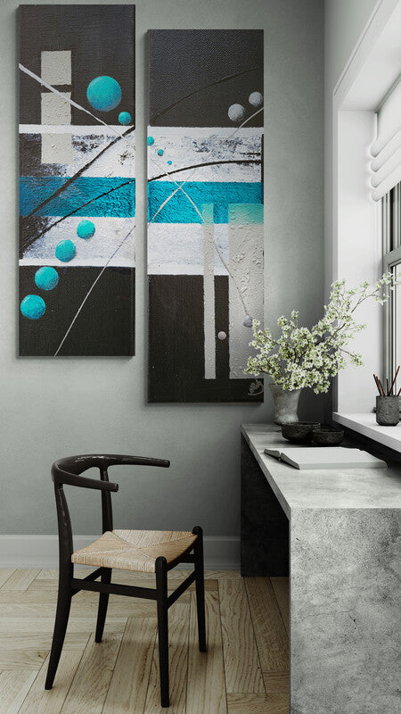 Celio Skyy is a 2 piece wrapped canvas' created with find acrylic paint and have a natural finish. 2 4x12" pieces. This set is signed numbered and come with certificate of authentication. This "Wall Candy is ready to hang and ships for Free.