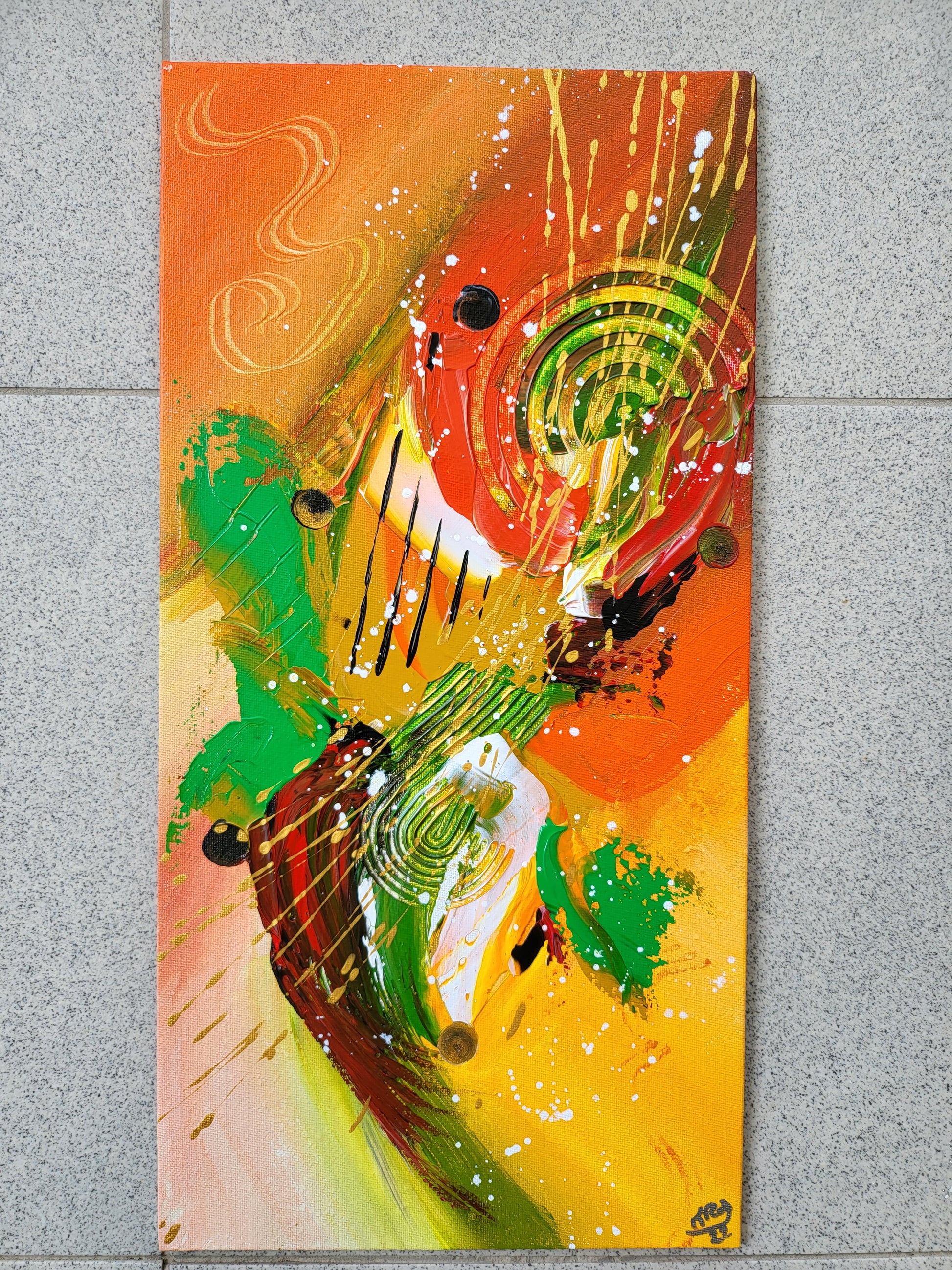 Let your creative spirit shine with this vibrant Citrus Original Artwork! Infused with energy and made from acrylic paint on an 8x16 inch canvas board, it'll add a fun and colorful accent to your home. Hang it with confidence -it's ready to frame and comes with a certificate of authenticity signed and numbered.