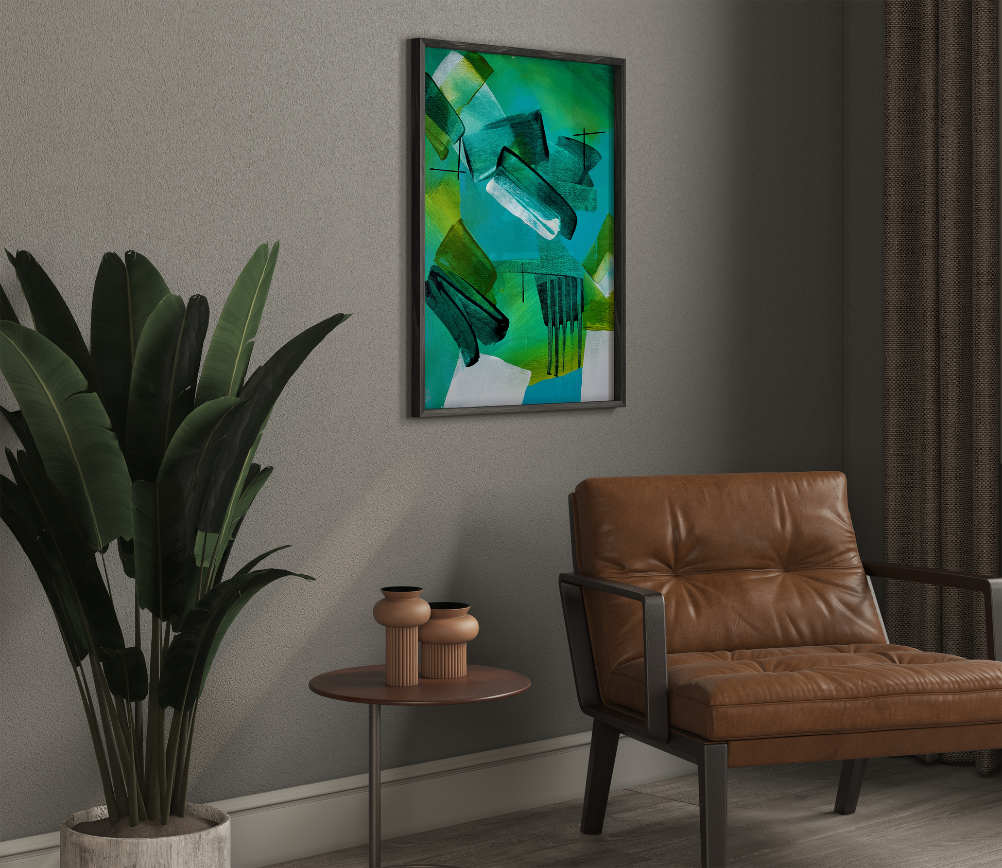 Green Matrix is a 11x14 wrapped canvas created with find acrylic paint and have a natural finish. This piece is signed, numbered and comes with certificate of authentication. This "Wall Candy is ready to hang and ships for Free.