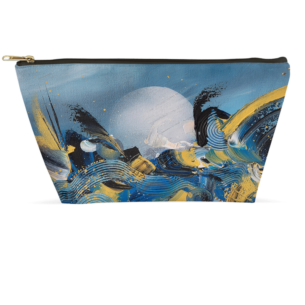 These durable 100% polyester poplin fabric bags feature a gold zipper. Made in USA. Care instructions: Machine washed on cold, no bleach. Tumble dry on low. Do not iron or dry clean.