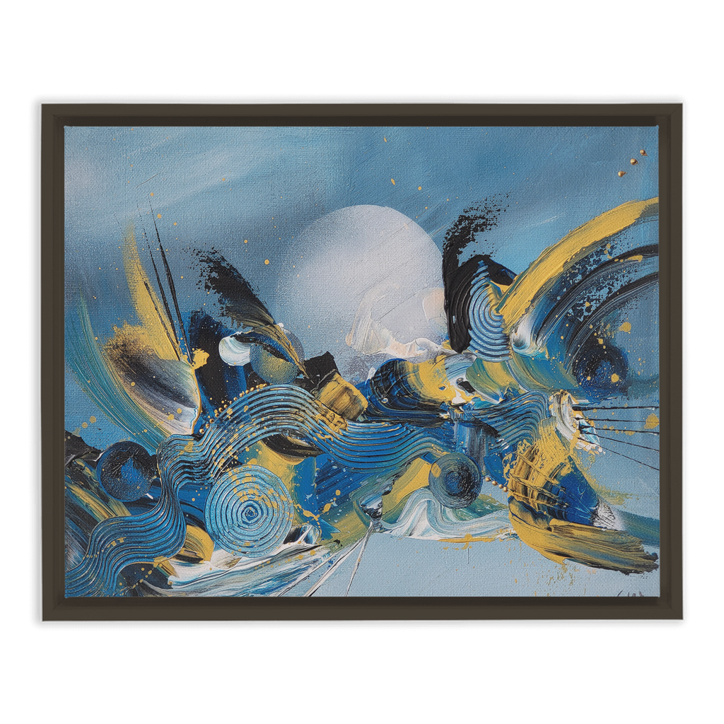 Treat yourself to top quality canvas digitally printed and framed on hardwood frame. Ready to hang canvas is a 100% polyester base and the print media is acid free with a medium texture and scratch-resistant finish. Solid wood frame, fully finished backing, with corner bumpers for level hanging and to protect your wall. Easily wipes clean with a damp cloth.