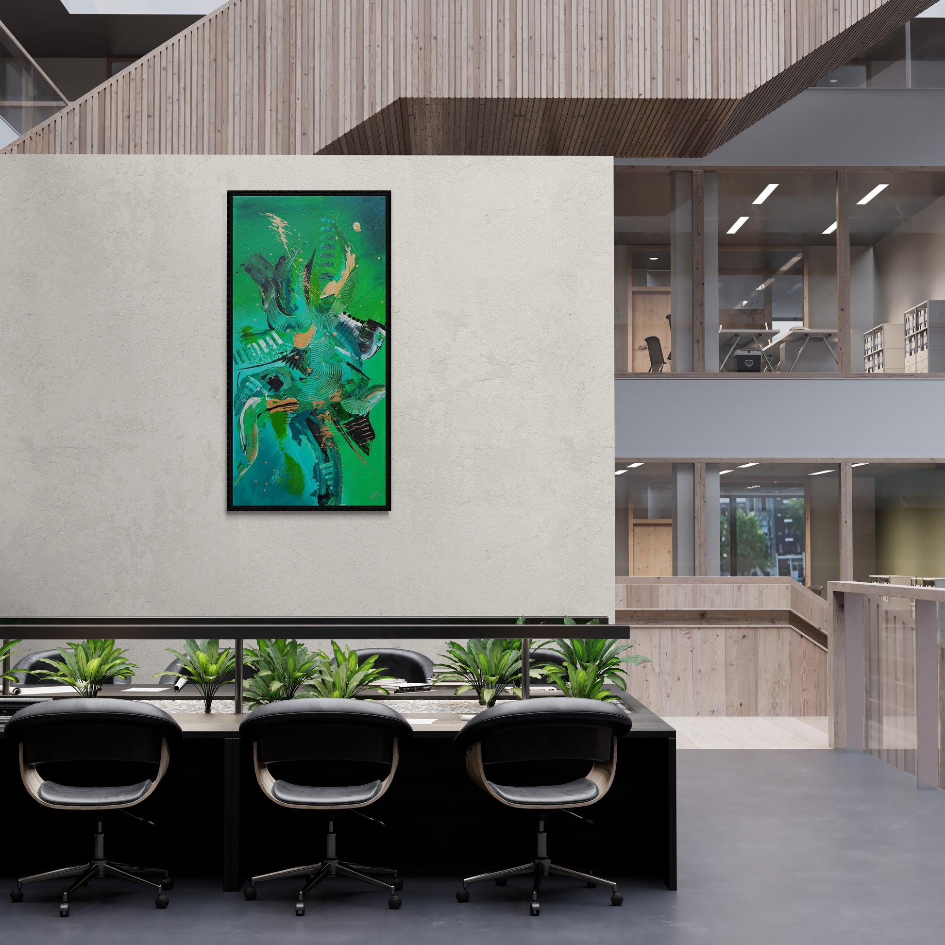 Emerald is a 10x20 wrapped canvas created with find acrylic paint and have a natural finish. This piece is signed, numbered and comes with certificate of authentication. This "Wall Candy is ready to hang and ships for Free.
