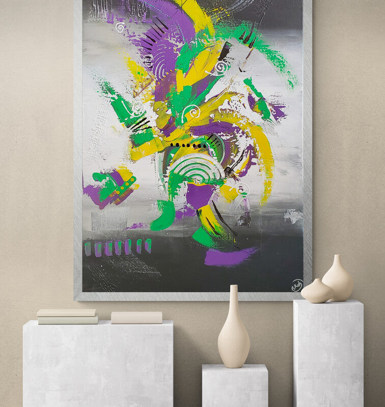 Fat Tuezday is a 15.5x23.5 wrapped canvas created with find acrylic paints with a natural finish. This piece comes numbered with a Certificate of Authentication and this "Wall Candy is ready to hang and ships FREE!