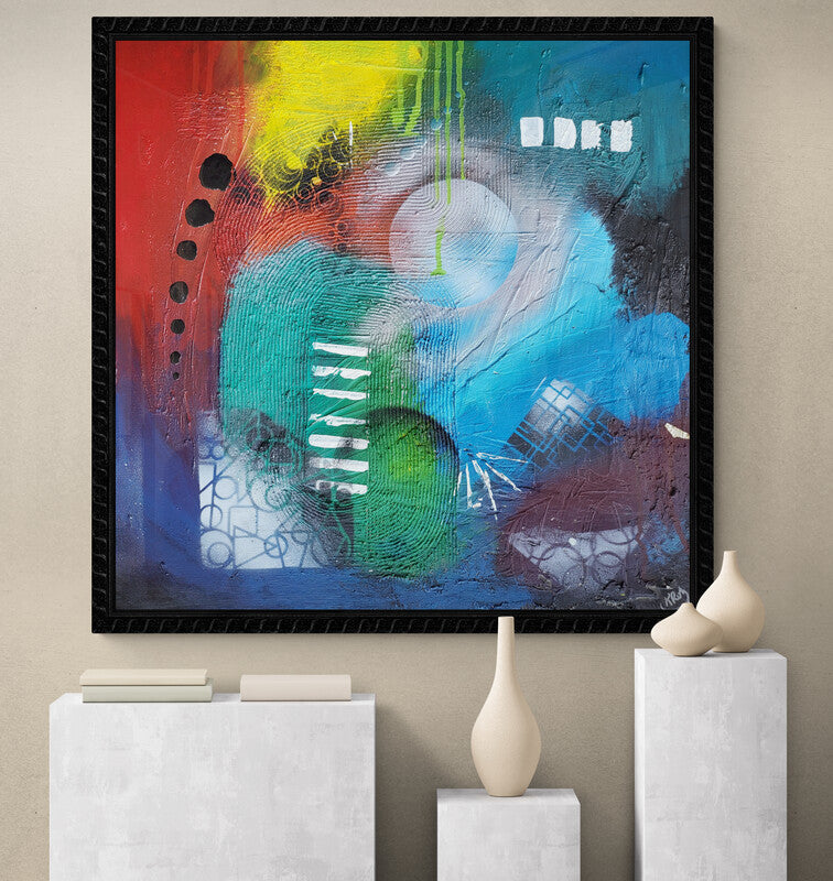 Ghost is a 20"x20" wrapped canvas created with fine acrylic paint and has a natural finish but has a lovely texture. This piece is signed, with a certificate of authentication and comes ready to hang. Ships FREE