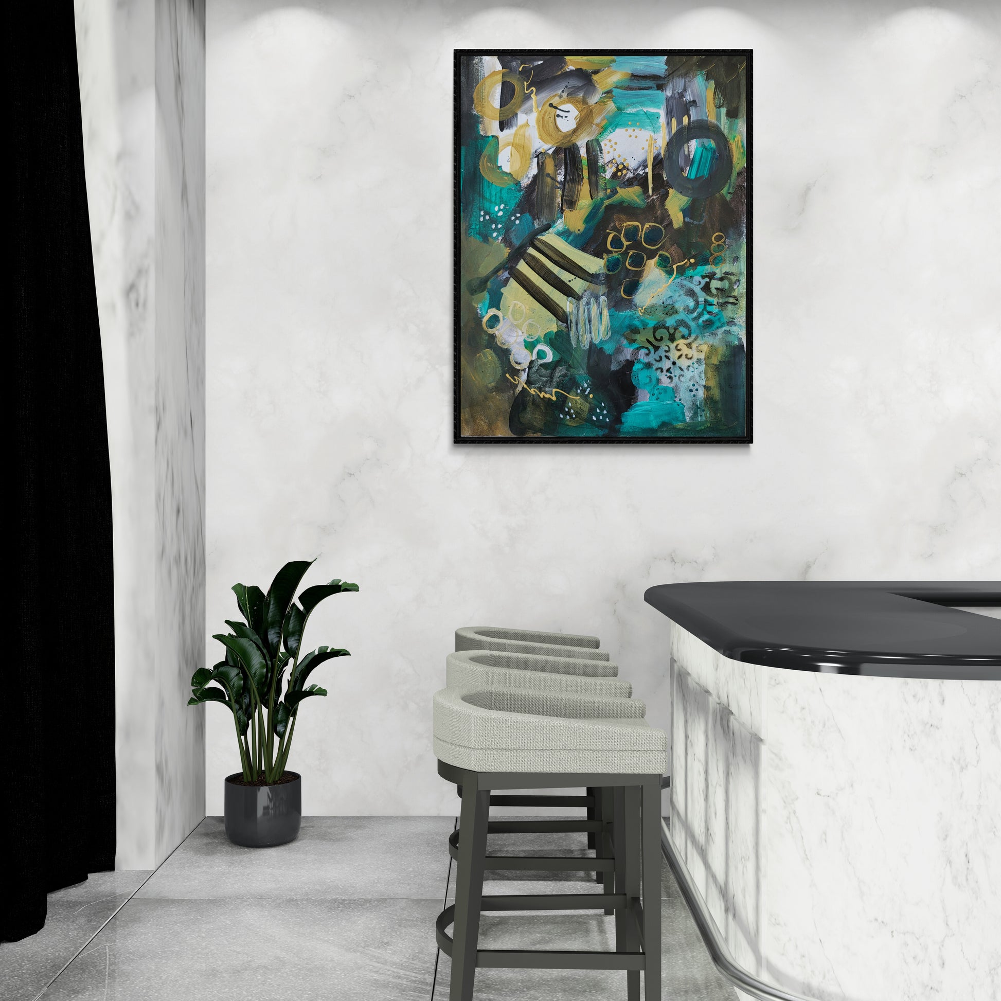 Experience the ultimate elegance of Intuitive Hues #21 part 2 of the color theory study. Crafted on a 9x12 inch canvas paper, matting included making this piece 11x14 ready to frame. Comes signed and numbered with a certificate of authenticity. It's the perfect addition to your art collection and ships for free. The original artwork is created on Acid-free heavy weight fine art paper and is mounted an matted. The Original art is 9" x12" and 11x14" with matting ready to frame. This piece ships for Free.