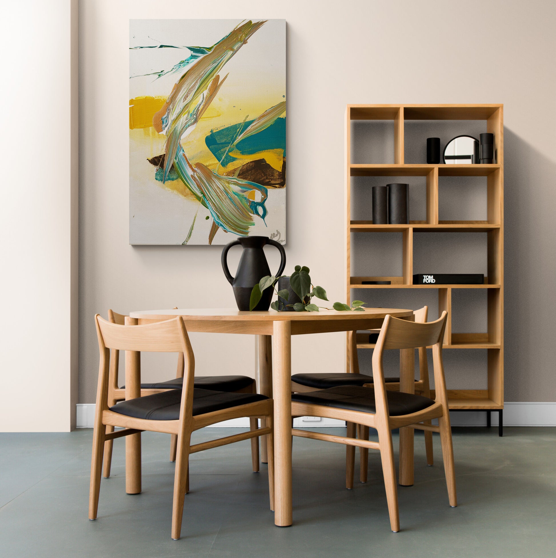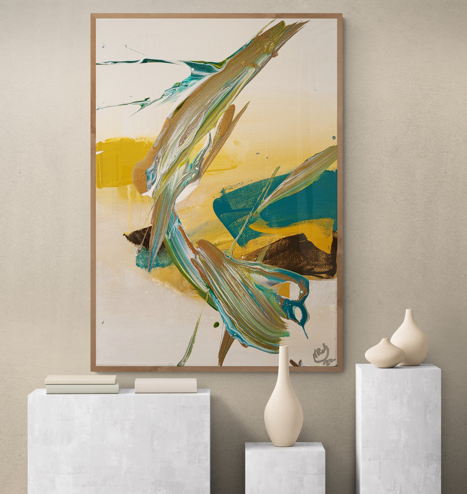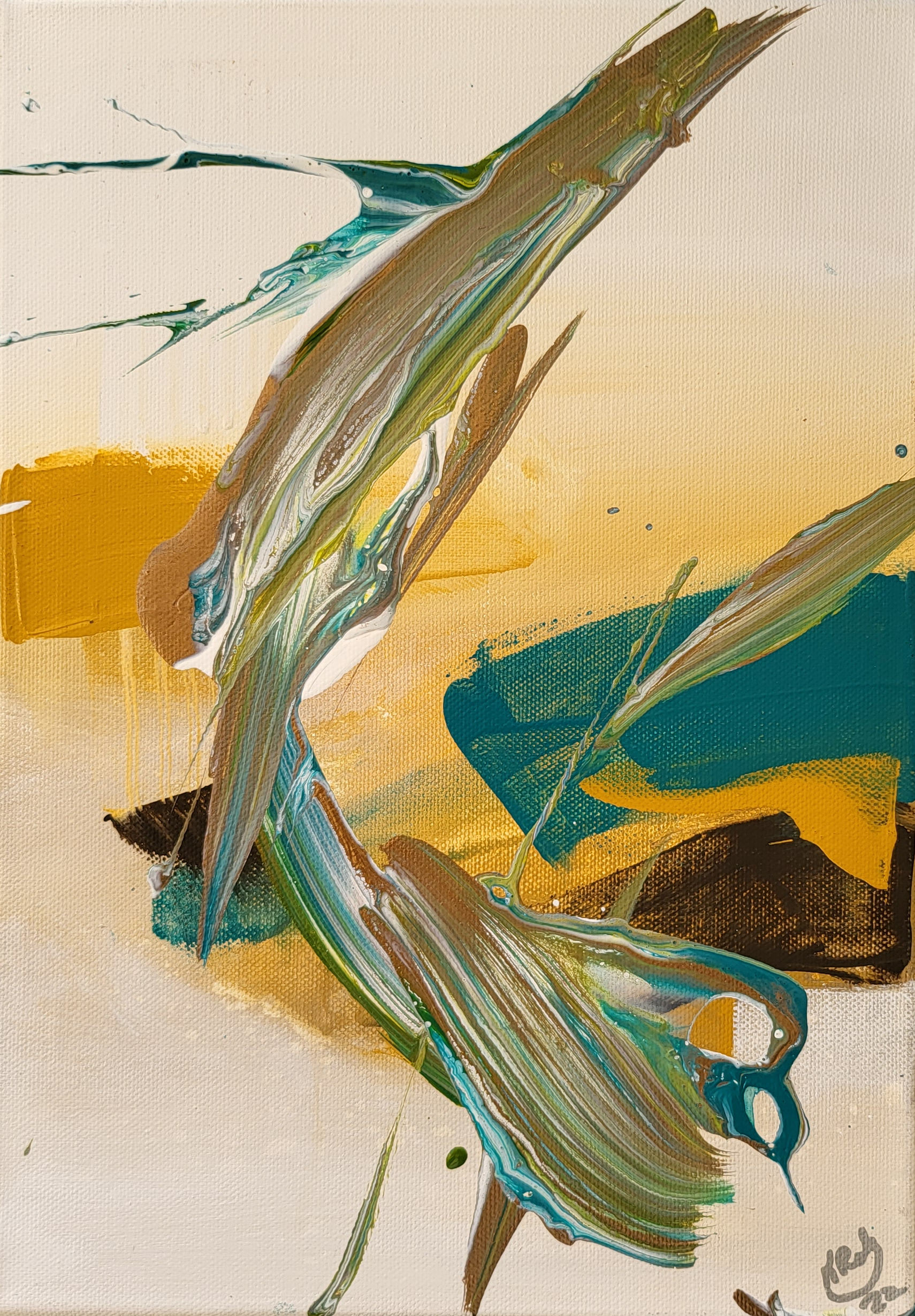 Kamakiri is 13.5x9 inch wrapped canvas created with fine acrylic paint and have a natural finish. This artwork takes full advantage of the natural canvas, providing a smooth, durable surface with incandescent tones. The 13.5x9 inch wrapped canvas is expertly crafted with fine acrylic paint, hand-signed, and ready to hang. Plus, shipping is free. Matching pillow free with the purchase of this original artwork