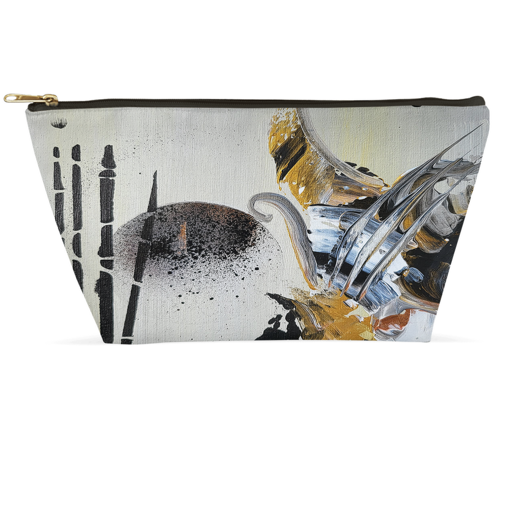 These durable 100% polyester poplin fabric bags feature a gold zipper. Made in USA. Care instructions: Machine washed on cold, no bleach. Tumble dry on low. Do not iron or dry clean.