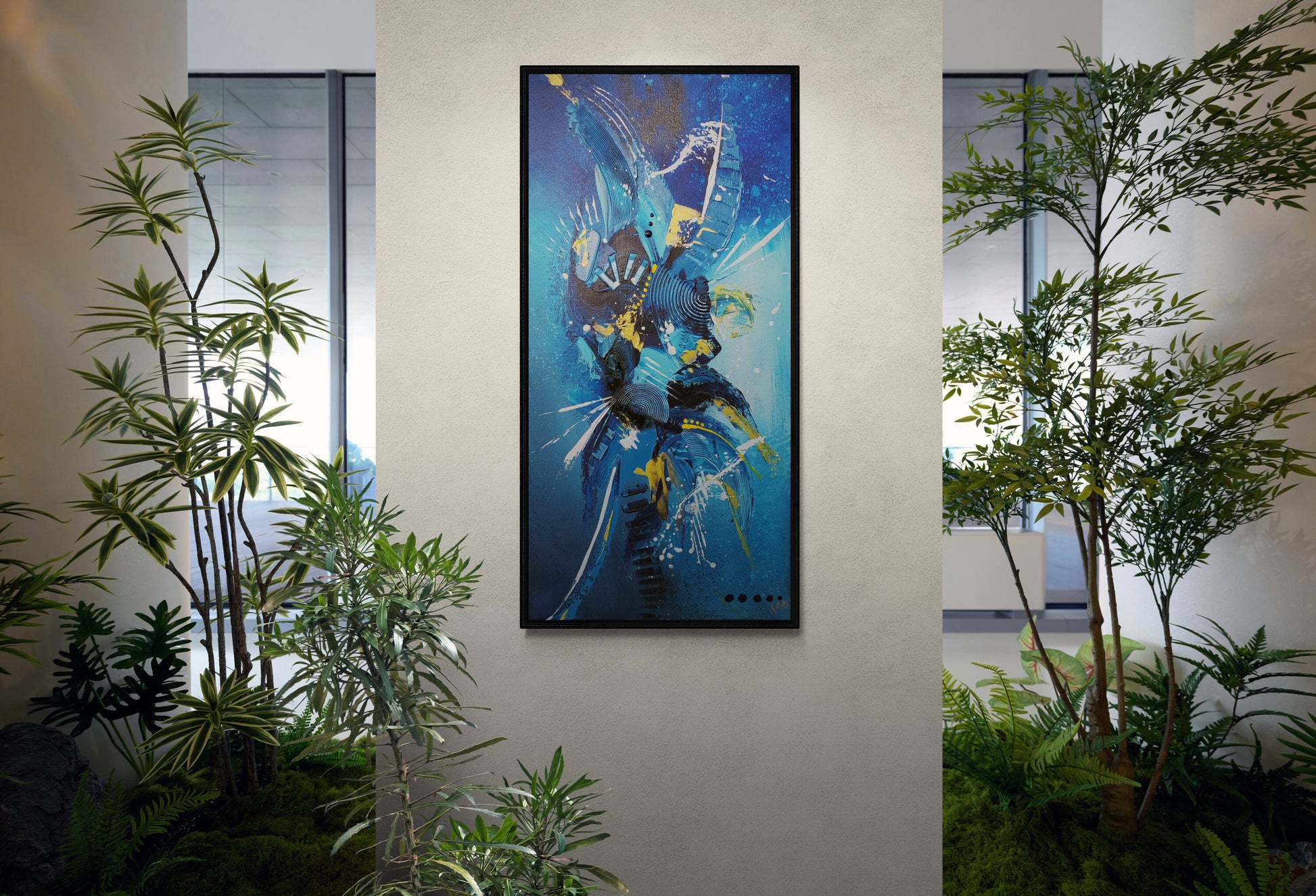 "Lagoon" is a 10x20 inch wrapped canvas created with find acrylic paint and has a natural finish. This piece is signed, numbered and comes with certificate of authentication. This "Wall Candy is ready to hang and ships for Free.