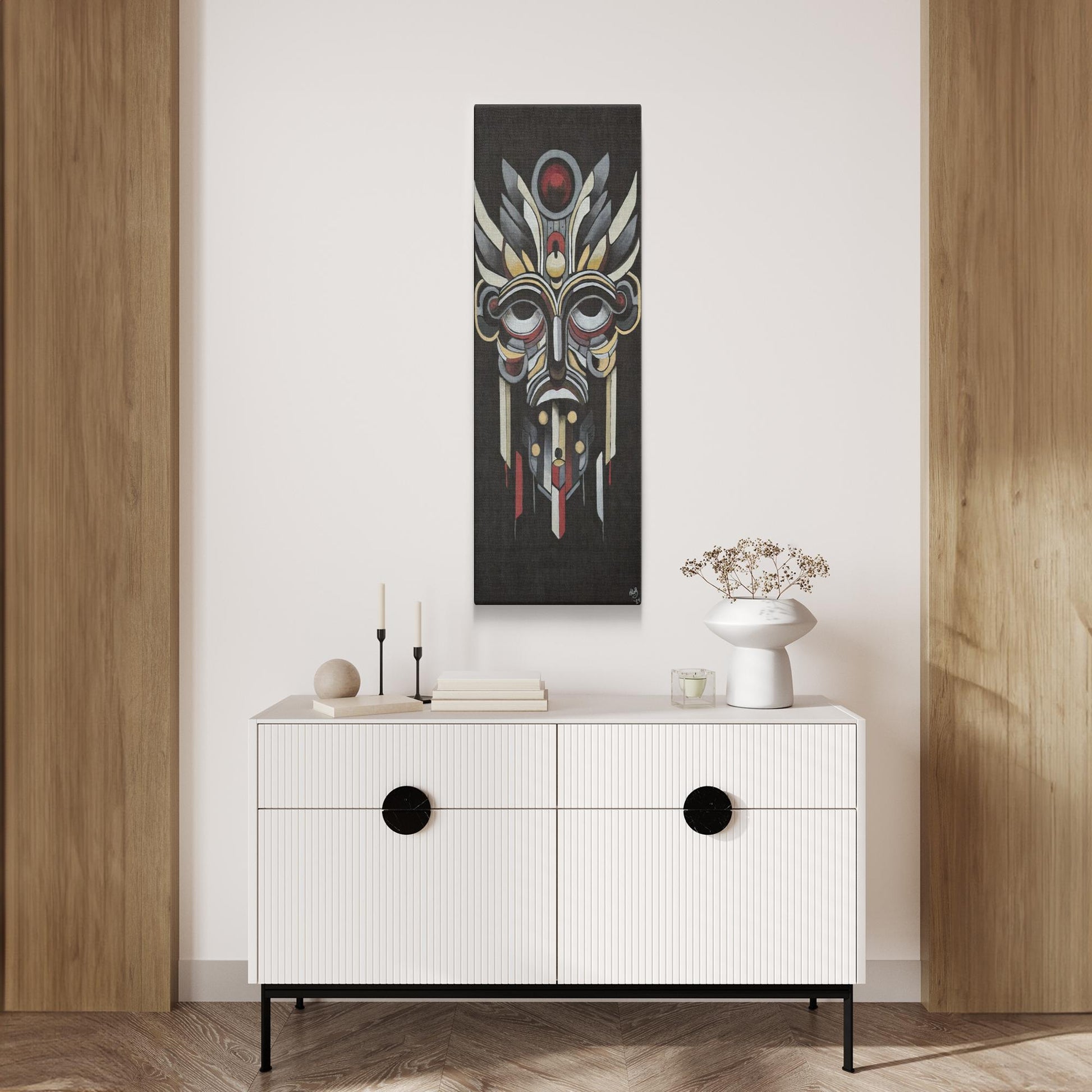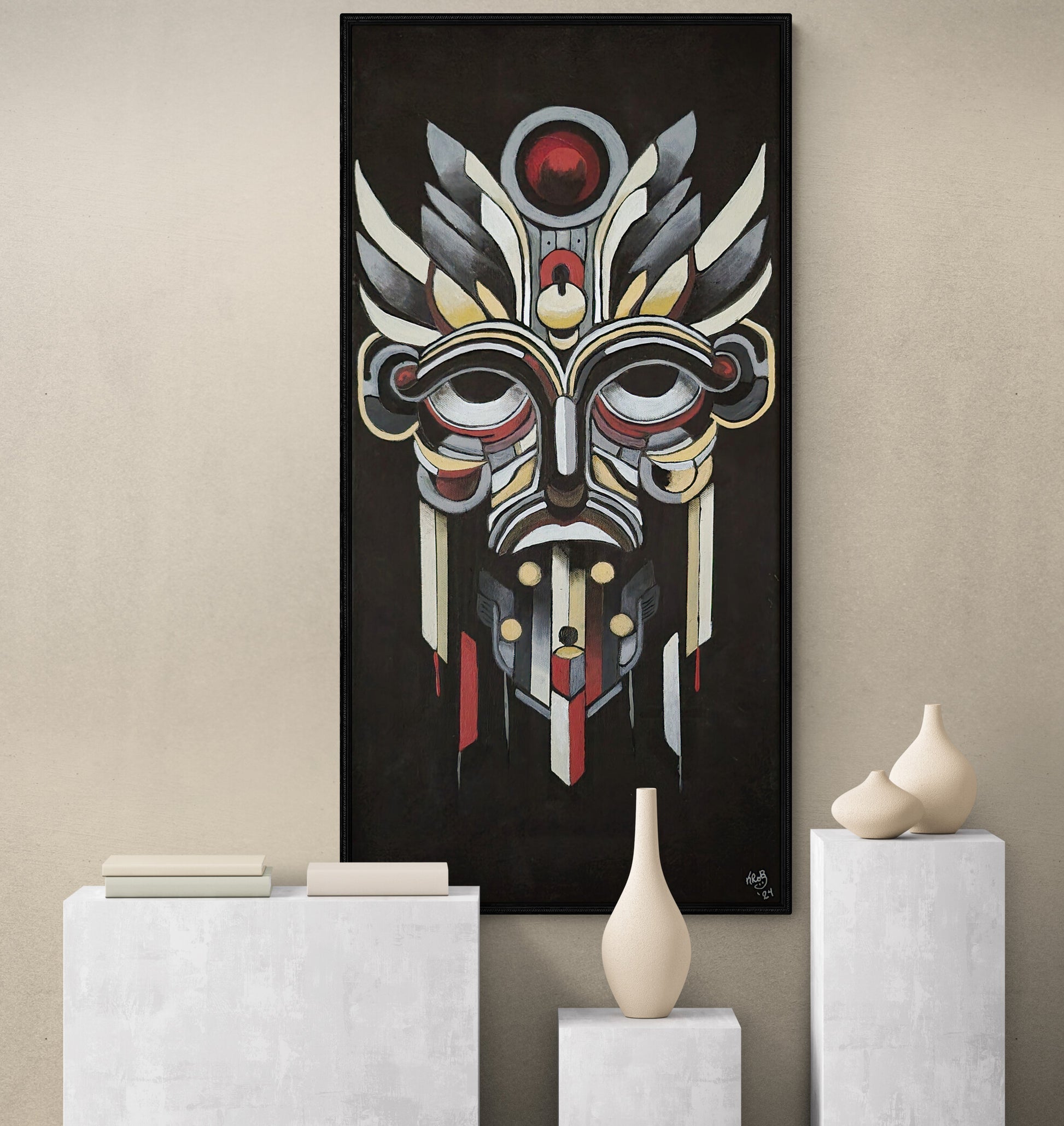 Mystic Visage is the second artwork in the Guardians of the Tribe Series. Printed on high quality, artist grade stock and folded around a lightweight frame to give them a gorgeous, gallery ready appearance. With acid free ink that will last without fading or chipping, Features a scratch-resistant UV coating. Wipes clean easily with a damp cloth or to remove dust, vacuum gently using a soft brush attachment.