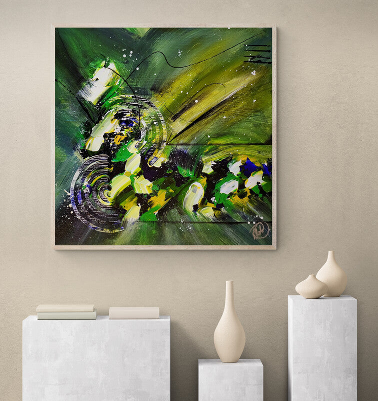 This 12x12 inch Canvas Wrap features fine Acrylic Paint, signed and numbered and accompanied by a certificate of authentication. It is ready to hang and purchasing this original piece also includes a free matching 14x14 pillow. Until January 2nd, 2025, receive one of our popular matching minky blankets as well.