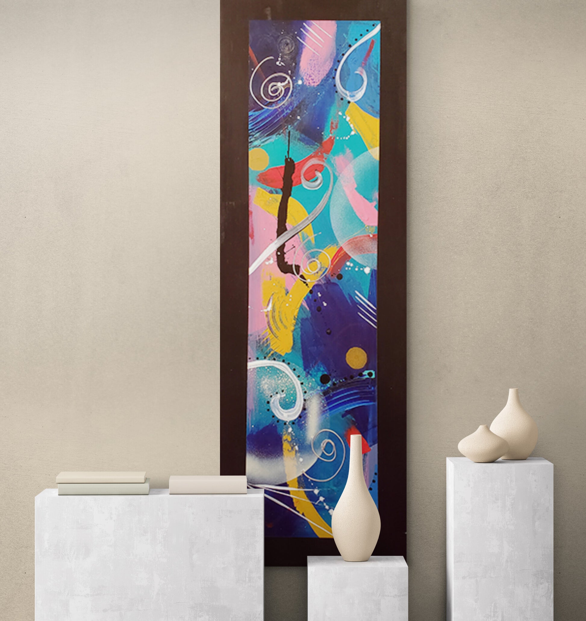 Introducing Radiant Mystery Original Artwork. This 12x36 inch masterpiece is crafted with archival acrylic paints, boasting a natural finish on premium deep wrap canvas. With free shipping and a matching pillow included, embrace elegance and style with this exclusive piece.