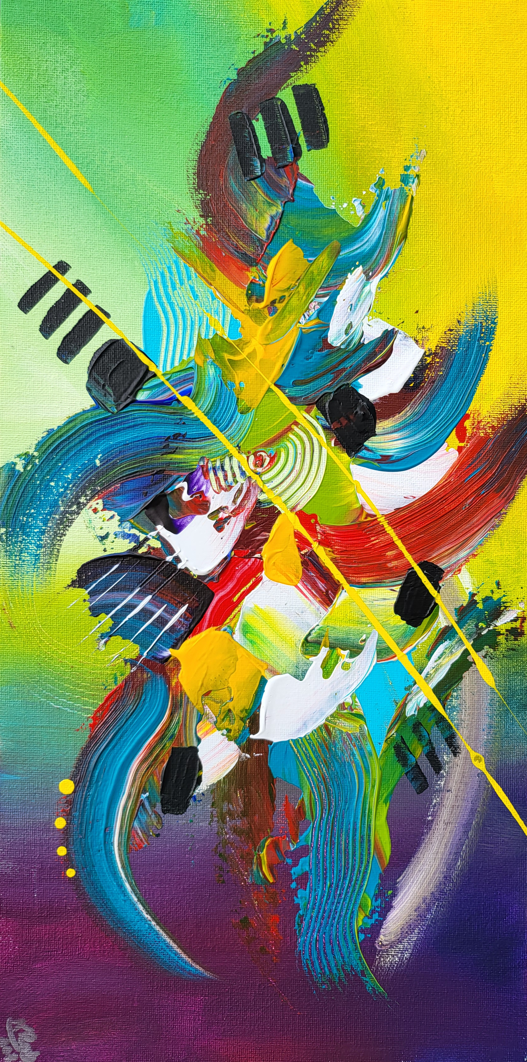 A timeless piece of art that blends a traditional media with a modern edge. Created with fine acrylic paint that graces a 8x16 inch canvas board, it's a signed piece that's ready to frame and ships free.