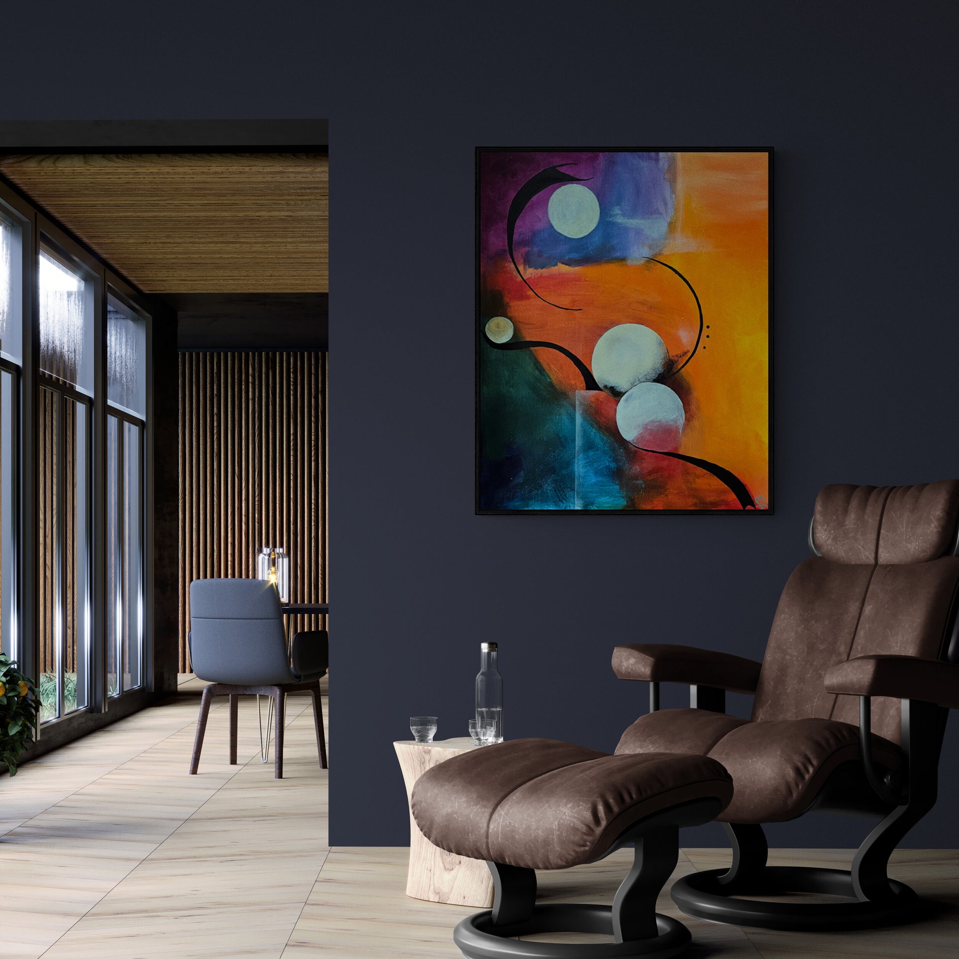 A radiant journey across color and form—Solar Drift captures the quiet pull of motion and memory. Four luminous spheres float through a shifting horizon, from emerald dusk to golden flare. A first-edition meditation on light, connection, and emotional resonance.