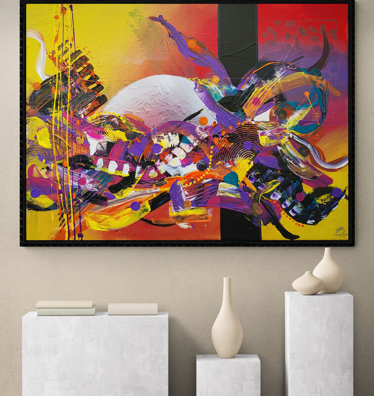 Indulge in the Caribbean Carnival, a magnificent 23.5x17.5 inch canvas art piece, meticulously handcrafted with premium acrylic paint. Showcasing a natural finish, this one-of-a-kind creation is signed, numbered, and accompanied by a certificate of authenticity. Experience the luxury of effortless hanging and complimentary shipping with this exquisite "Wall Candy.