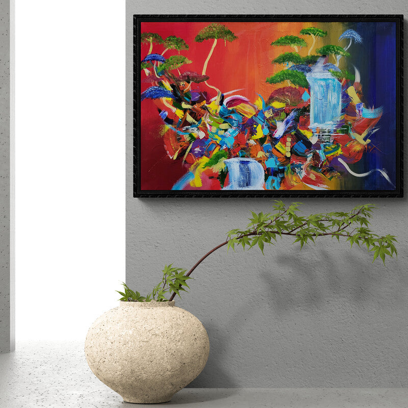 A vivid immersion into color and motion, ShinrinYoku channels the restorative spirit of “forest bathing” through bold, layered strokes and organic bursts of energy. The composition evokes the sensation of stepping into a living landscape—where light, foliage, and emotion collide in a vibrant, breathing rhythm. This piece captures the harmony between chaos and calm, inviting viewers to pause, inhale, and reconnect with their own inner wilderness.