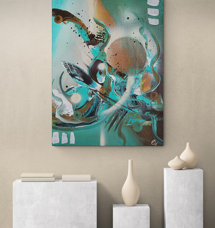 Viridescent Veil is crafted with precision on a 16x21" canvas, wrap archival quality paints. This artwork arrives complete and ready to hang, accompanied by a signed number and Certificate of Authenticity. Shipping is complimentary.