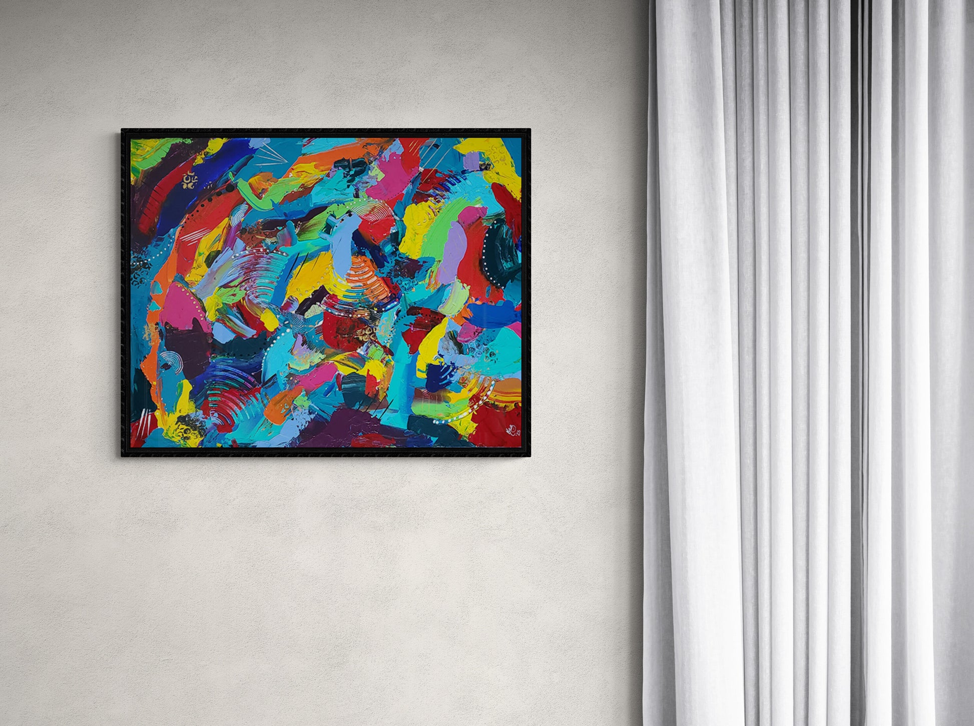 Vivid Symphony is a wrapped canvas 30x24 inch's, created with fine acrylics. As an abstract artist, I transform emotions and ideas into vibrant, dynamic compositions that invite viewers to explore the depths of their imagination. Ships FREE!